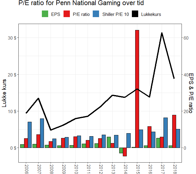 Så for at justerer for udsving på den korte bane, fandt en professor fra Yale universitet kaldet Robert Shiller på at udregne P/E ratioen baseret på de sidste 10 års inflationsjusteret indtjening. Det betyder også at udregningen bliver lidt mere kompliceret, men heldigvis ligger der data fra S&P500 siden 1871 frit tilgængeligt fra Shiller’s Yale website.